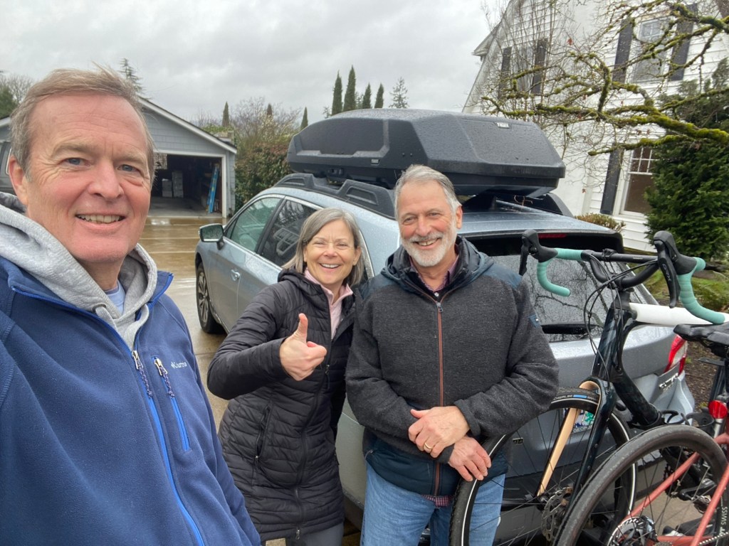 I started several months ago, getting our Subaru Outback ready for its next cross country journey. This time we decided not to pull a trailer, so it is outfitted with our Thule rocket box and bike rack on the back. Steven starts out today on the cross country drive to get our bicycles and gear to St Augustine, Florida. Thank you Steven for doing the journey while we stay home a bit longer to enjoy the company of our new granddaughter Miyako. Safe travels. See you on the Atlantic coast March 17th!