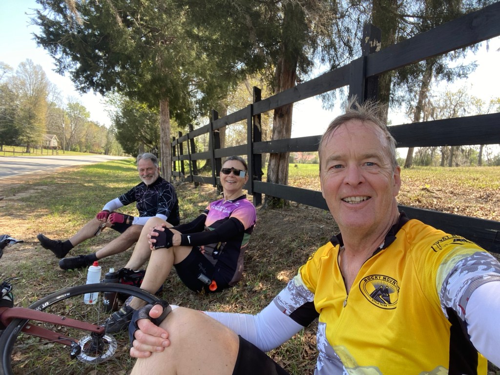 Would have been nice to spend some time in Tallahassee and see the Florida State campus. Will have to return for a longer visit. Sunrise departure for another long day, but we crossed over to the Central time zone, so life is now an hour earlier! 75.7 miles, 2509’ elevation gain as we entered the NW of FL and rolling farm land. Even the soil changed from a sandy white color to a bright orange after crossing the Apalachicola River in Chattahoochee (a stones throw from the Georgia state line). And did I mention what an utter joy it was to have the slightest east/northeast tailwind most of the day??!! Totally amazing to end day 5 a bit sore in the wrists and tushie when the rest of your body and soul isn’t wiped out from battling a headwind. Staying in another clean 2 star motel in Marianna, another county seat with a gorgeous old courthouse and lots of history of battles between humans. And so great to arrive at our destination and our amazing support driver Jody already has us checked in and bags unloaded! Luxury!