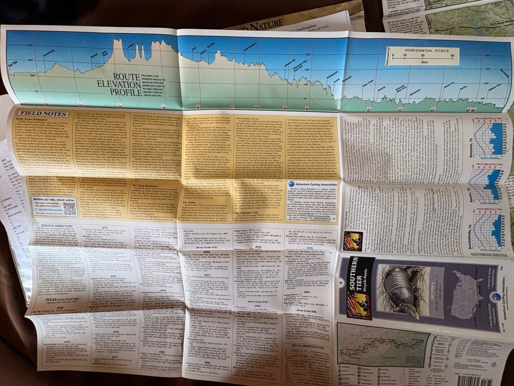 Moved on to a new Souther Tier map section today, and it has elevation profiles! …. guess we’ll be doing some climbing unlike the very flat ride we’ve had so far! Yesterday was a warm up with nearly 3000’.