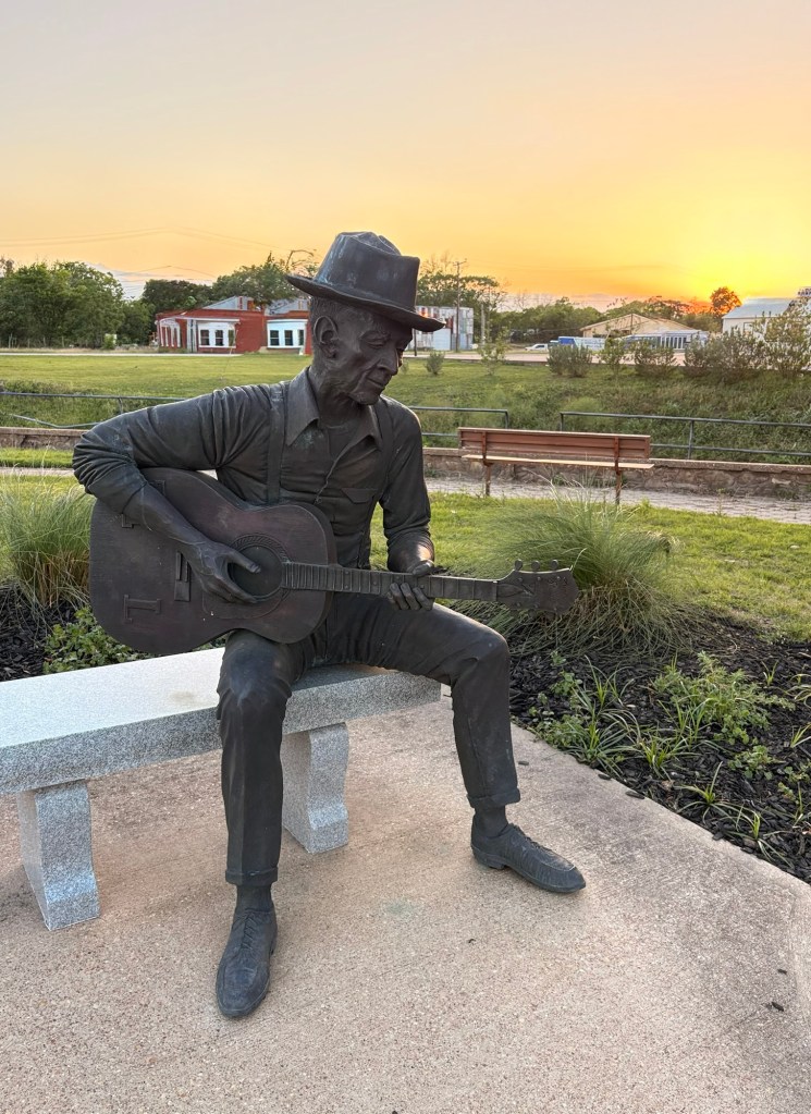 Navasota last night – the Blues Capital of TX with some great public art and near to both Presidential Libraries for George H.W. & George W. Bush.