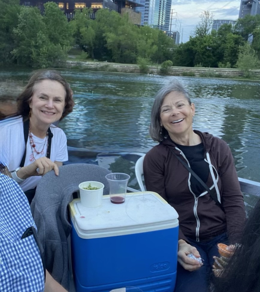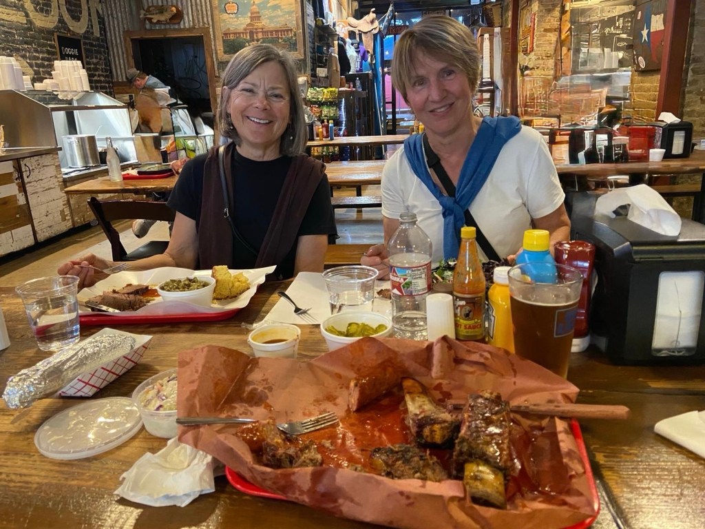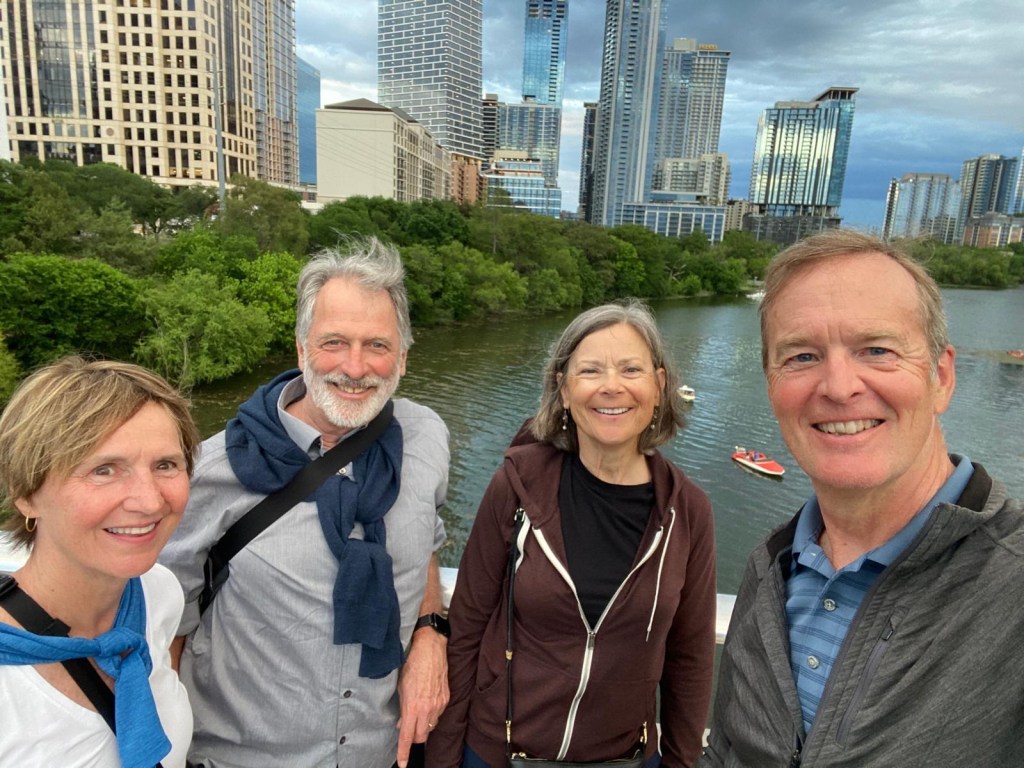 Wow when you’ve been in small town America cycling, the big cities seem even bigger!! We switched up our rest days to stay an extra day here (rather than previously scheduled Fredericksburg). We got our bikes serviced and saw Kathy’s Georgetown classmate, Louise Joy, and her family on a tour boat on Lady Bird Lake to watch the bats come out from under the South Congress Bridge to feed for the night. Among many events, it’s pretty much “the” event in downtown Austin between March and October when the bats are visiting from Mexico. Louise brought yummy tacos from Torchy Tacos for our dinner! Thank you Louise, Gary, Clare & Susie for the Texas hospitality.
