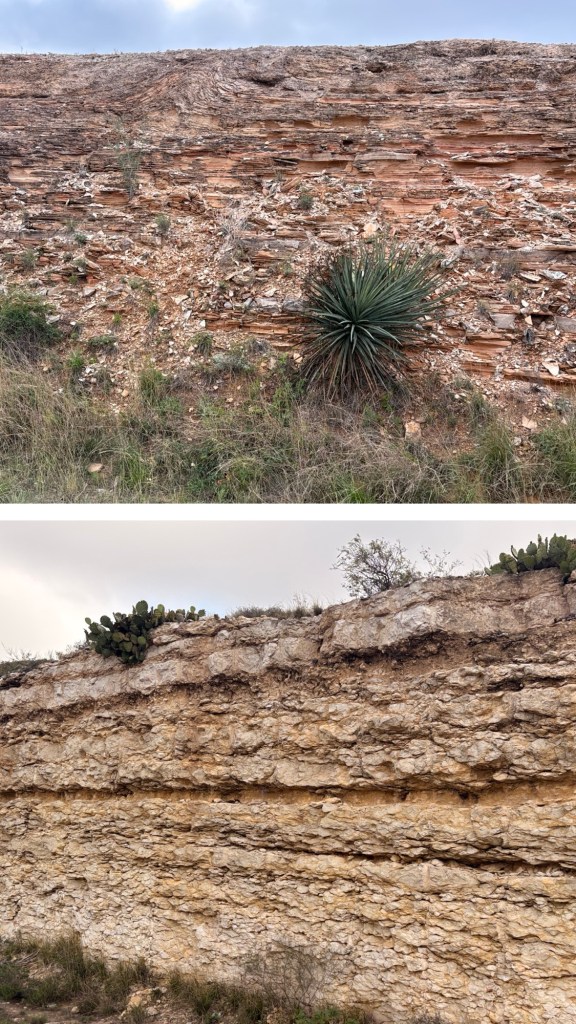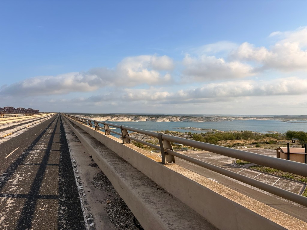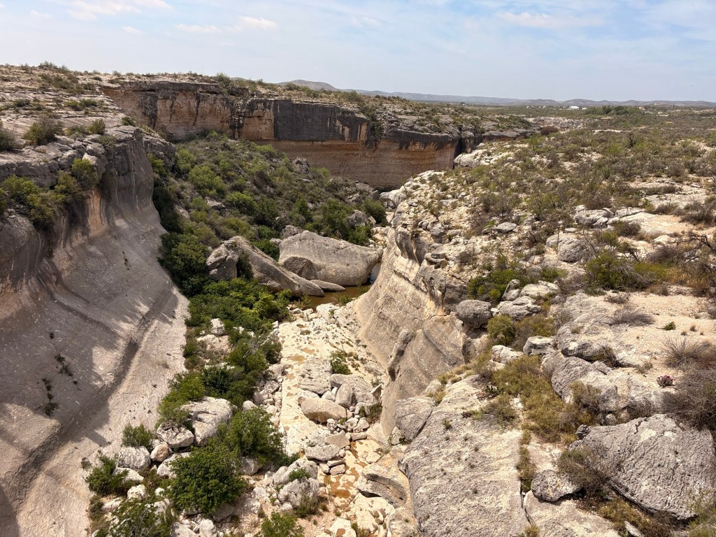 Definitely gone from the verdant, river-, creek- and spring-filled land of the Hill country! Into the open, arid, flat high desert of western Texas. Lots of railroad tracks from the early companies in the 1800s building railroads and getting access to the CA gold rush …. of course way later than native Americans (4200 year old pictographs in the area), European & Mexican explorers and missionaries.