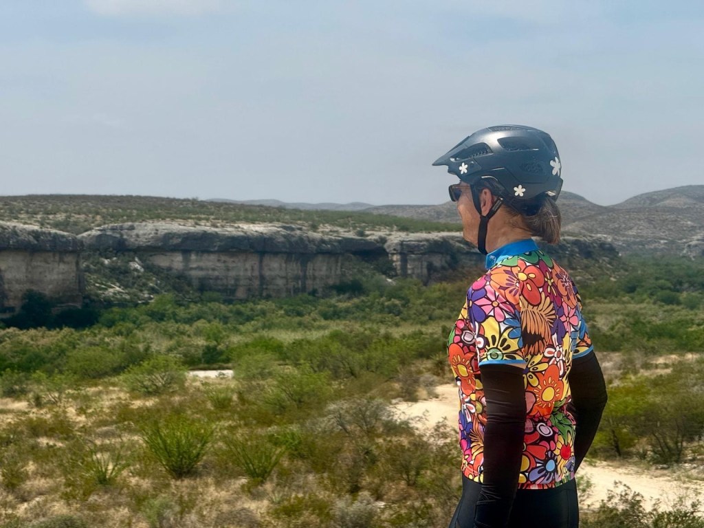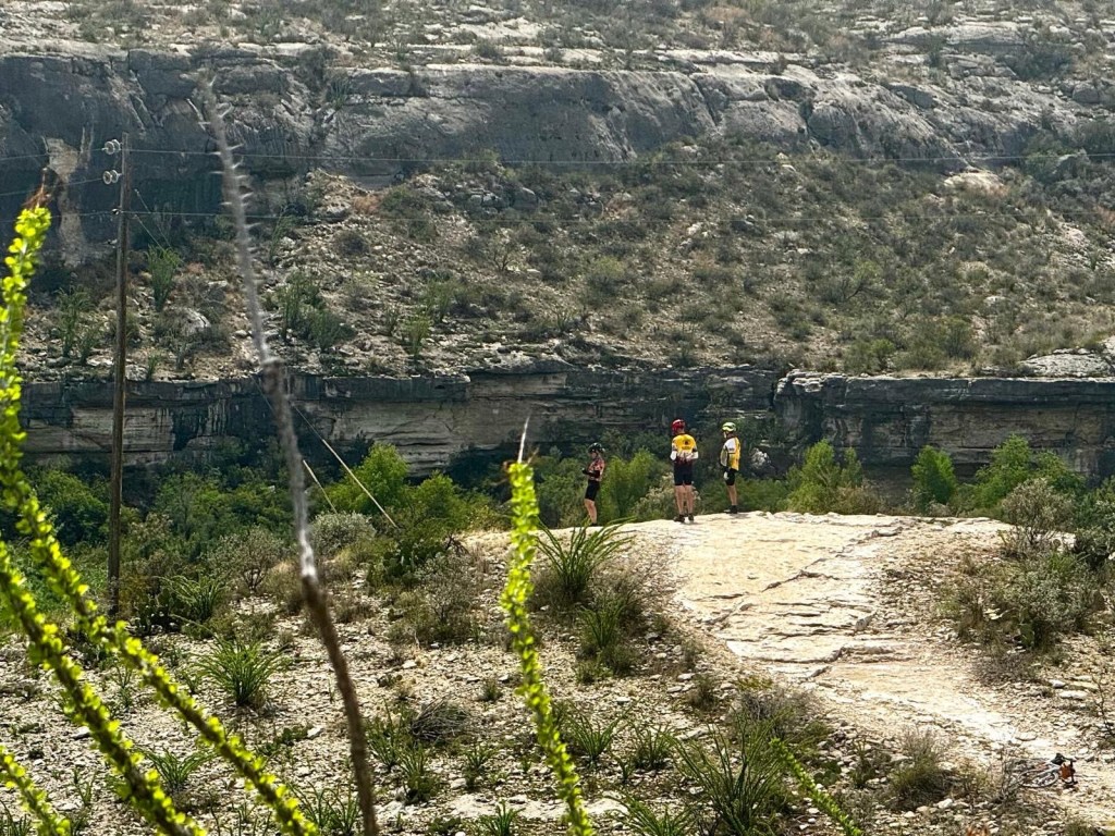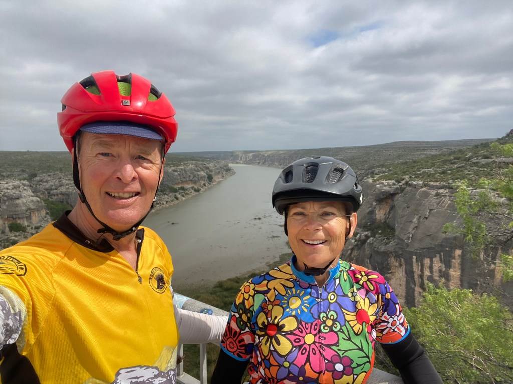 60 miles 2260’ for me to Langtry and 83.8 miles 3782’ for Tom and Steven to east of Dryden. Jody then drove us in to the town of Sanderson for the night. There was nowhere else to stay for many miles! Hwy 90 west and NW from Del Rio was smooth with wide shoulders and courteous, very fast traffic. Cloud cover most of the morning but the heated up to 90. A super helpful S/SE tailwind put us at 15.5 avg mph for the day. Only rough/chipseal section was about 15 miles in the middle of the ride. Very little civilization out here, but lots of Border Patrol agents in pick ups, a blimp, and communication/ satellite stations. Tried to see the Rio Grande in Langtry, but water level is very low so couldn’t see the water which was far away anyway, but the canyon is big.