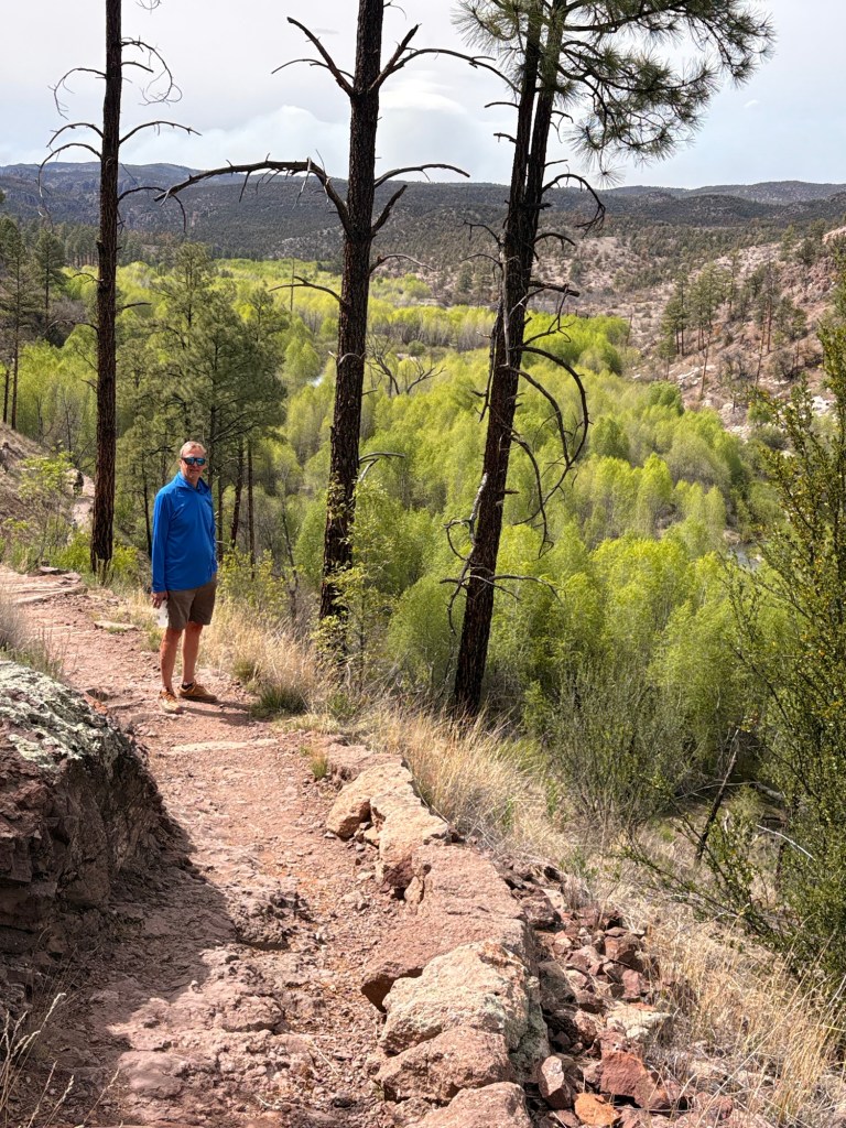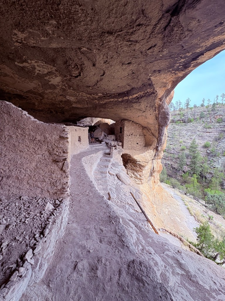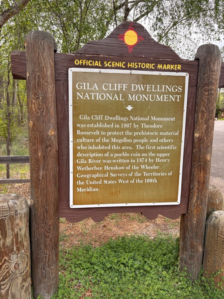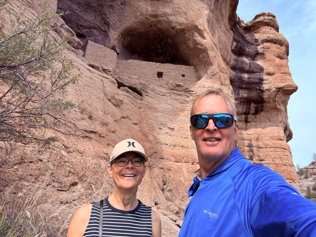 We changed clothes quickly so we could drive the curvy mountain roads north to the Gila Cliff Dwellings National Monument which closed at 4pm. We made it a bit after 2pm to take in the Visitors Center and hike the one mile loop trail to see the dwellings. You can add 180’ elevation gain for the stairs and uphill we did (!) to the 800 year old cave dwellings of the Mogollon people. Incredibly well preserved cave ruins. Then back to our airbnb for a yummy home cooked dinner since this area of NM is very remote and doesn’t have many services.
