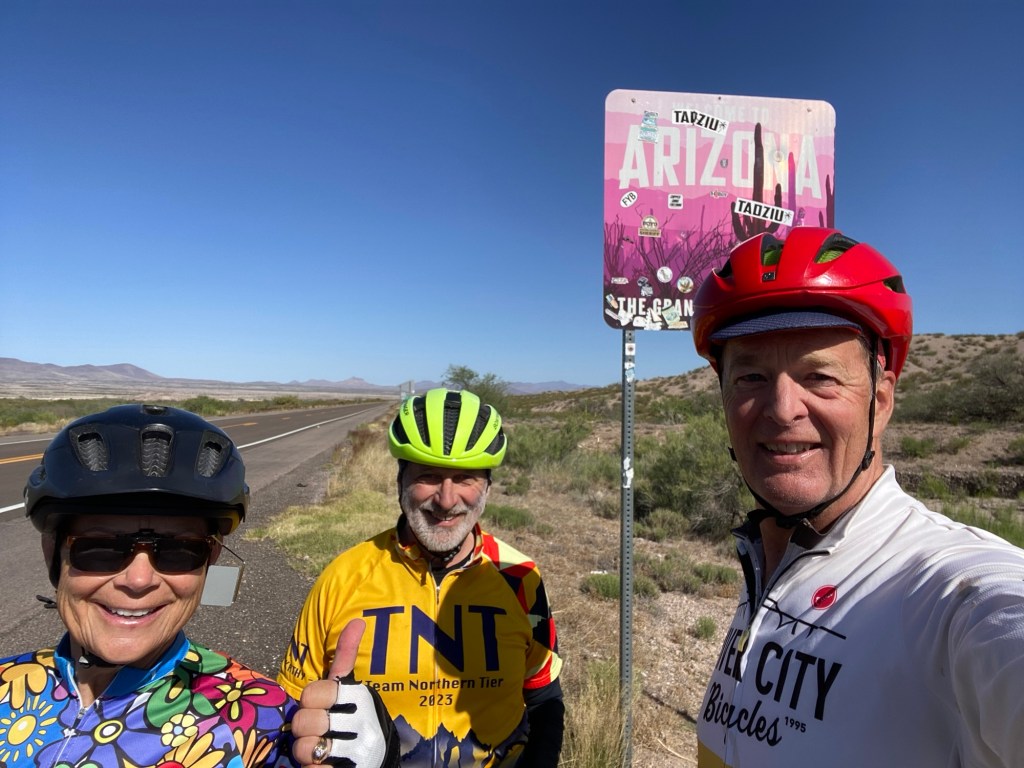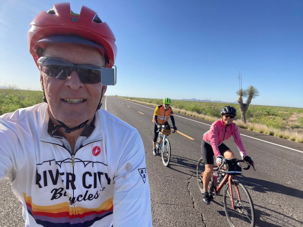 On a single highway all day today – hwy 70. Straight with a decent shoulder (until Graham County, AZ line) and decent drivers (until one huge semi decided to turn right into a Safford gas station literally right in front of us!). Thanks Tom for pulling when the N/NW & W headwinds picked up at times. 75.7 miles and 1247’. It was so nice to just ride and through interesting, albeit desolate and dry, terrain. Good bye New Mexico; hello Arizona and the Pacific time zone. 😊